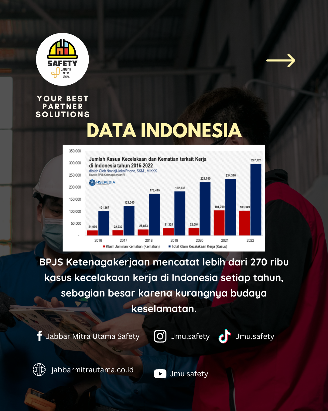 DATA INDONESIA: BPJS Ketenagakerjaan mencatat lebih dari 270 ribu kasus kecelakaan kerja setiap tahun di Indonesia, sebagian besar disebabkan oleh kurangnya budaya keselamatan.