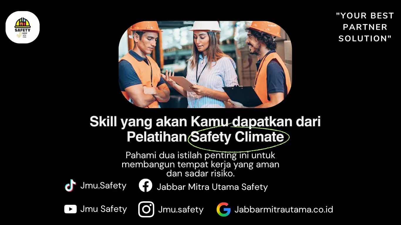 Safety climate adalah persepsi kolektif terhadap komitmen keselamatan dalam organisasi. Pelatihan safety climate berperan sebagai katalisator terbentuknya budaya kerja yang aman. Dalam konteks pelatihan, outcome yang paling penting bukan hanya transfer pengetahuan, tapi penguasaan keterampilan (skill).