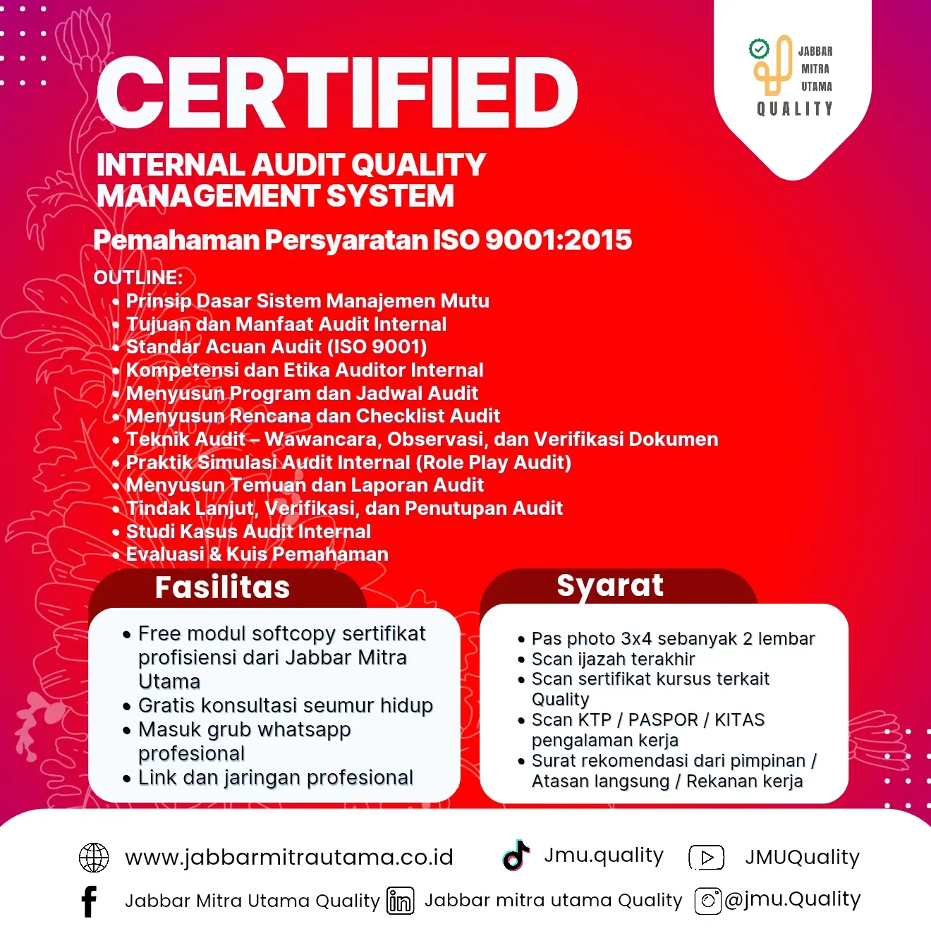 - Mampu melakukan audit internal sesuai prosedur dan standar yang berlaku.