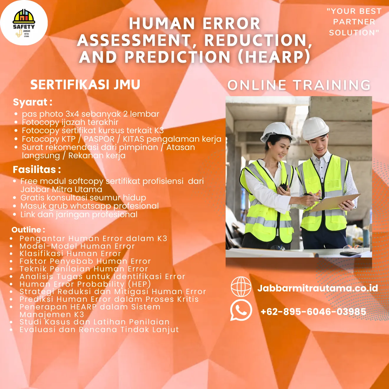 Melalui pendekatan teori dan studi kasus nyata, pelatihan ini membekali peserta dengan berbagai model, teknik penilaian, dan strategi mitigasi human error yang dapat diterapkan langsung dalam sistem manajemen K3 di tempat kerja.