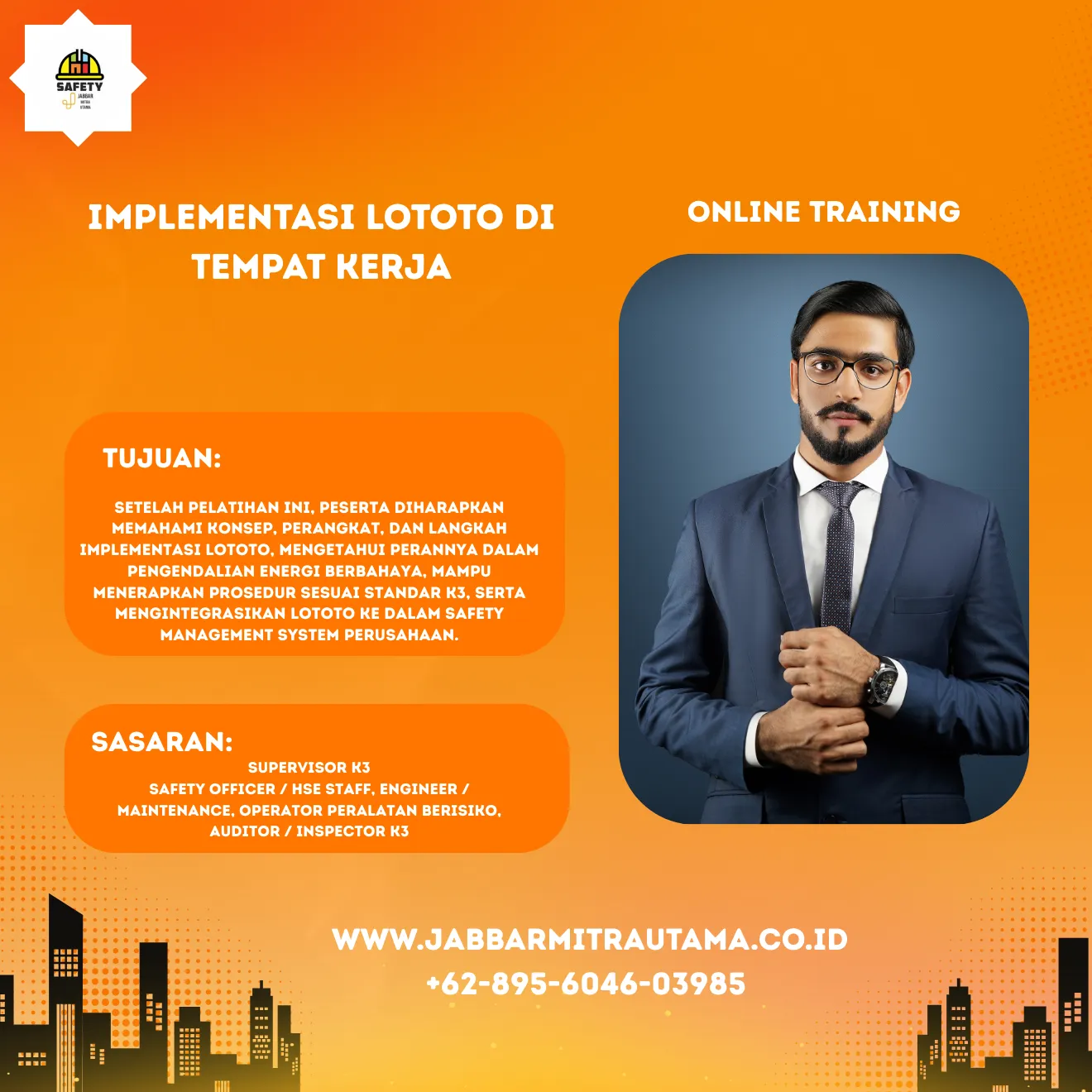 Pelatihan Implementasi LOTOTO (Lock Out Tag Out Try Out) di Tempat Kerja dirancang untuk memberikan pemahaman komprehensif mengenai konsep, peralatan, dan langkah-langkah penerapan LOTOTO dalam mencegah kecelakaan akibat energi berbahaya. Peserta akan mempelajari prosedur keselamatan kerja yang tepat, memahami regulasi terkait, serta meningkatkan keterampilan dalam menerapkan LOTOTO sebagai bagian dari sistem manajemen keselamatan di perusahaan. Dengan pengetahuan ini, risiko kecelakaan kerja dapat ditekan, dan budaya keselamatan kerja semakin terjaga.