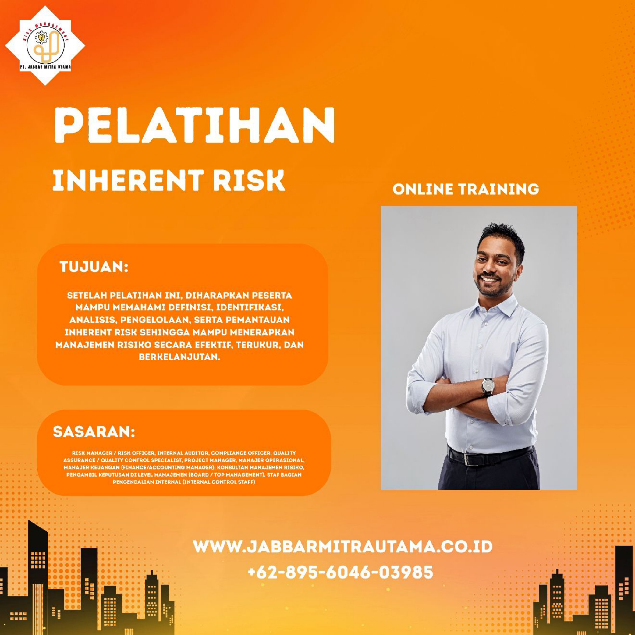 Pelatihan Inherent Risk adalah program online training yang dirancang untuk memberikan pemahaman mendalam mengenai risiko inheren dalam manajemen risiko. Peserta akan dibekali dengan konsep dasar, metode identifikasi, teknik analisis, serta strategi pengelolaan dan pemantauan inherent risk. Melalui pelatihan ini, peserta diharapkan mampu meningkatkan kemampuan dalam mengelola risiko secara terukur, sistematis, dan berkelanjutan sehingga dapat mendukung efektivitas penerapan sistem manajemen risiko di organisasi.