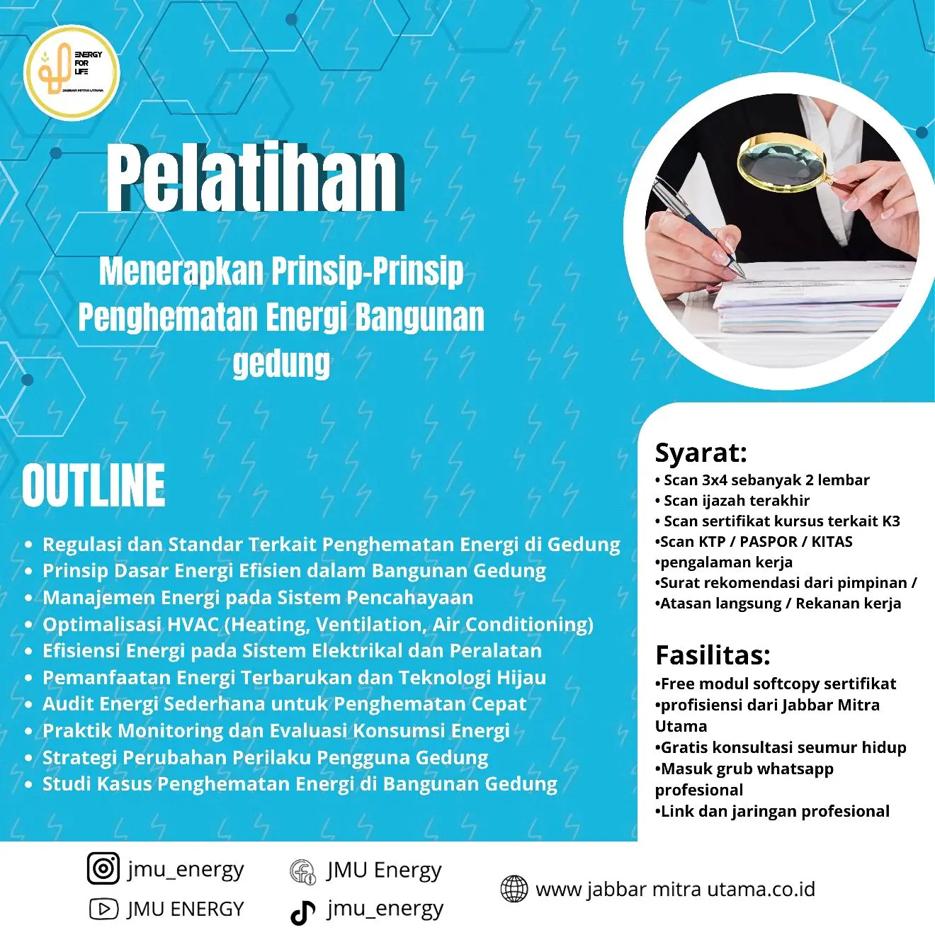 Pelatihan online "Menerapkan Prinsip-Prinsip Penghematan Energi di Industri" dirancang untuk membekali peserta dengan pengetahuan dan keterampilan praktis dalam mengidentifikasi peluang penghematan energi serta menerapkan solusi efisiensi energi di lingkungan industri. Peserta akan mempelajari teknik survei lapangan, pemantauan konsumsi energi, hingga penyusunan rencana efisiensi jangka menengah yang berkelanjutan.