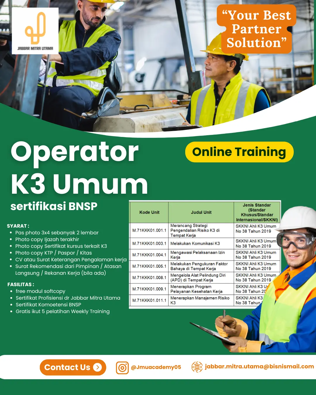 Meskipun tugasnya lebih operasional dibandingkan dengan teknisi K3 atau pengawas K3, Operator K3 Umum tetap memiliki peran yang sangat penting dalam menciptakan lingkungan kerja yang aman dan sehat.