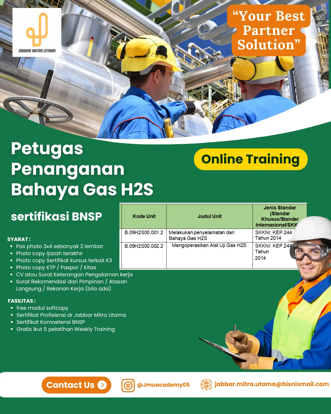 Petugas Penanganan Bahaya Gas H₂S adalah personel terlatih yang bertanggung jawab untuk mendeteksi, menangani, dan mengendalikan potensi bahaya paparan gas H₂S di tempat kerja, terutama di industri migas (minyak dan gas), petrokimia, pertambangan, dan instalasi pengolahan limbah.