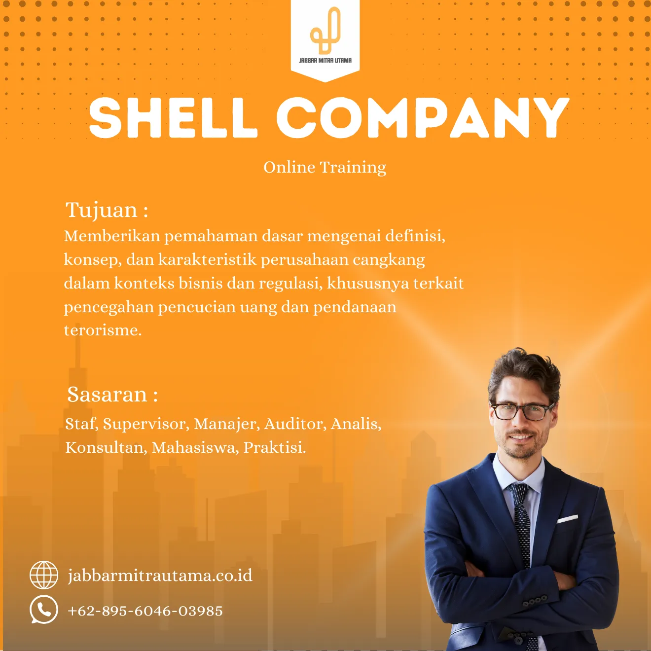 Pelatihan Shell Company adalah program online training yang bertujuan untuk memberikan pemahaman menyeluruh mengenai definisi, konsep, dan karakteristik perusahaan cangkang (shell company). Peserta akan mempelajari bagaimana perusahaan jenis ini digunakan dalam praktik bisnis maupun disalahgunakan untuk tujuan ilegal, termasuk pencucian uang dan pendanaan terorisme. Materi pelatihan disusun secara sistematis agar peserta mampu mengenali, menganalisis, serta menerapkan langkah-langkah pencegahan sesuai regulasi yang berlaku.