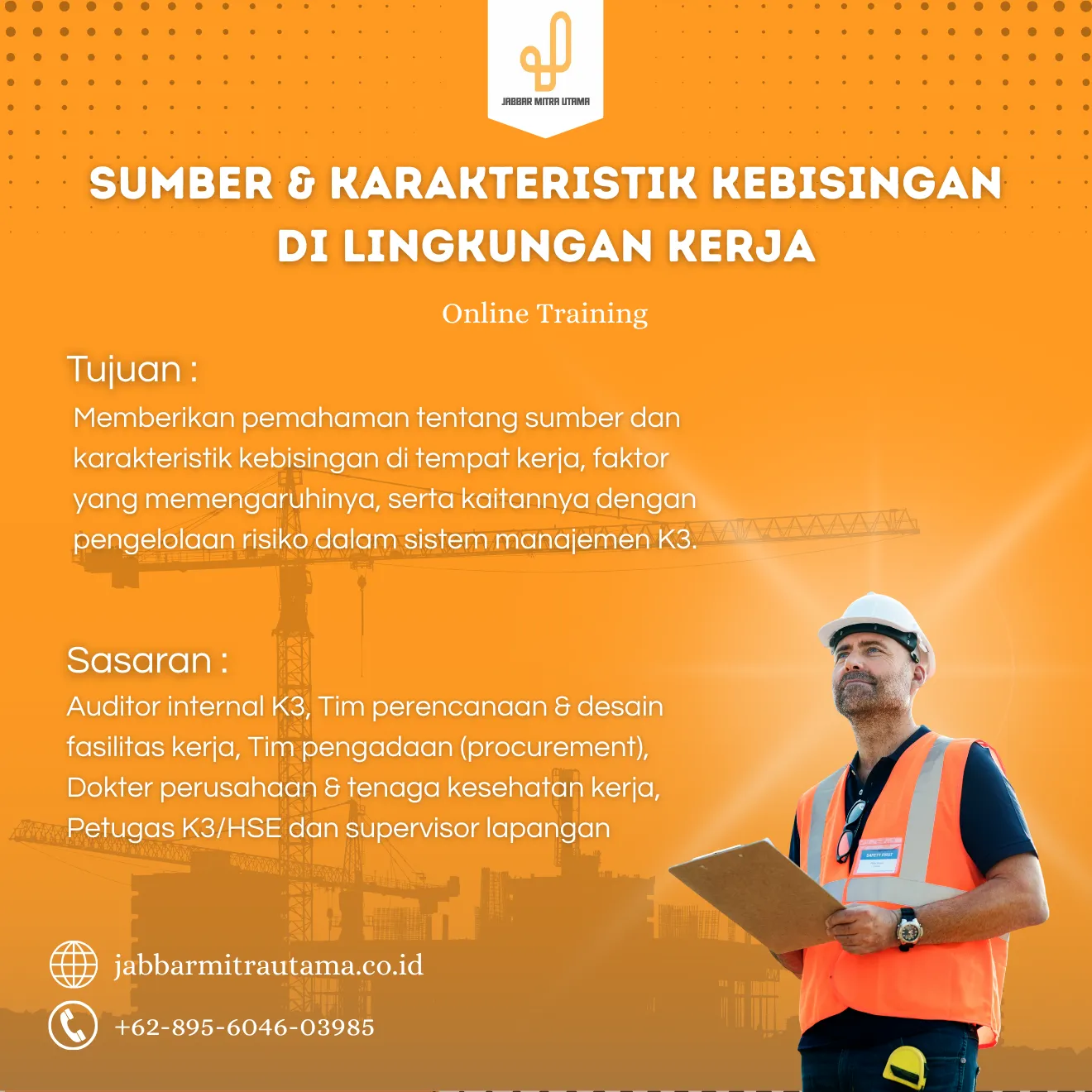 Kebisingan di lingkungan kerja dapat berasal dari berbagai sumber dengan karakteristik yang berbeda-beda, yang jika tidak dikendalikan dapat menimbulkan dampak serius terhadap kesehatan dan keselamatan pekerja. Pelatihan ini dirancang untuk memberikan pemahaman komprehensif mengenai sumber kebisingan, faktor yang memengaruhi intensitas serta penyebarannya, dan bagaimana karakteristik kebisingan berperan dalam penilaian risiko di tempat kerja. Dengan pengetahuan yang tepat, peserta akan mampu mengidentifikasi sumber kebisingan sejak tahap perencanaan, memahami kaitannya dengan proses produksi, serta merumuskan langkah-langkah pengendalian yang efektif dalam sistem manajemen K3. Pelatihan ini juga akan membantu perusahaan dalam menyusun strategi mitigasi kebisingan yang terintegrasi, sehingga tidak hanya melindungi kesehatan pekerja tetapi juga mendukung produktivitas dan keberlanjutan operasional.