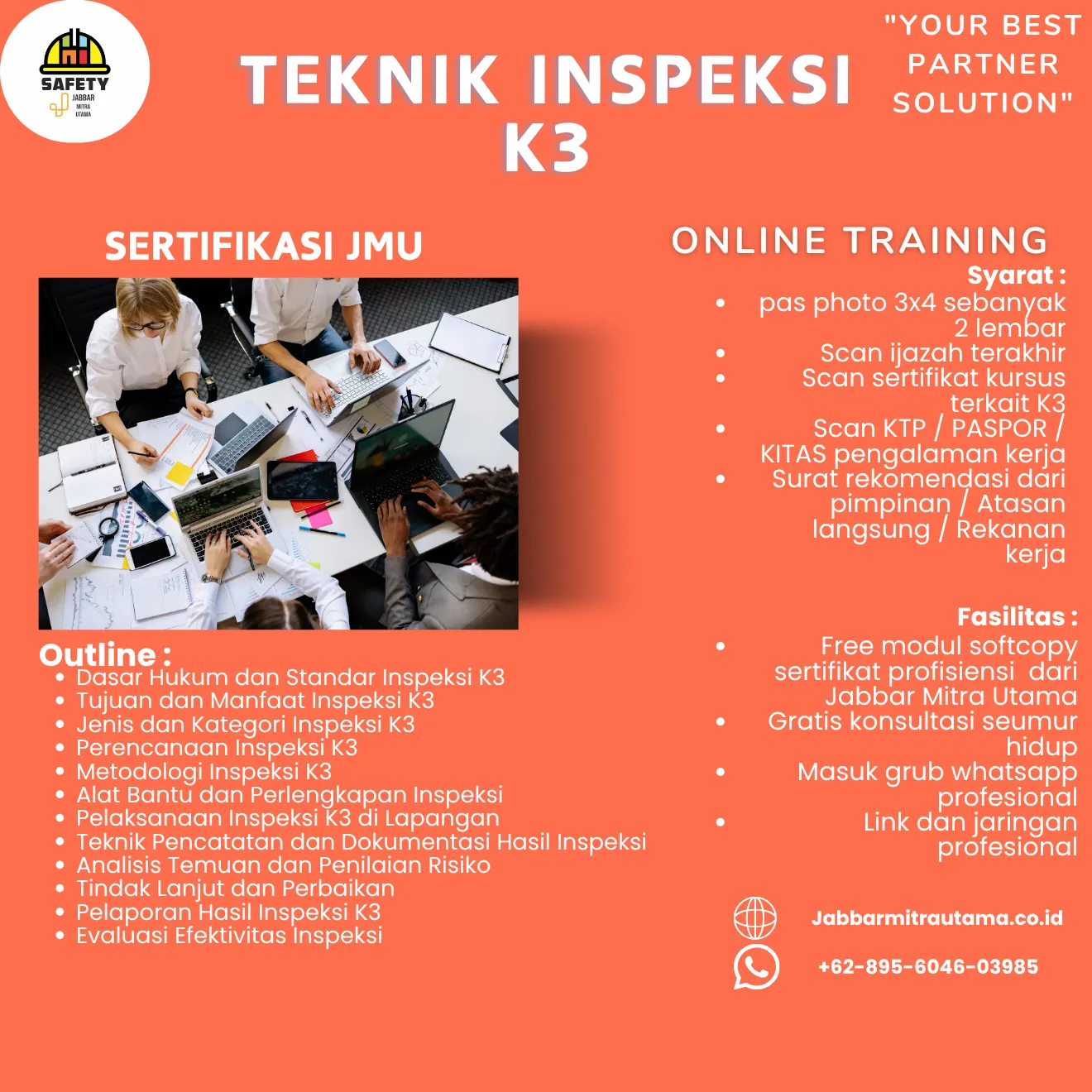Materi pelatihan juga mencakup pengumpulan data hasil inspeksi, analisis temuan, penilaian risiko, dan penyusunan dokumentasi hasil inspeksi yang akurat. Dengan studi kasus dan latihan evaluasi efektivitas inspeksi, peserta akan memahami bagaimana inspeksi yang tepat dapat meningkatkan keselamatan kerja, meminimalkan risiko, serta memastikan kepatuhan terhadap regulasi yang berlaku.